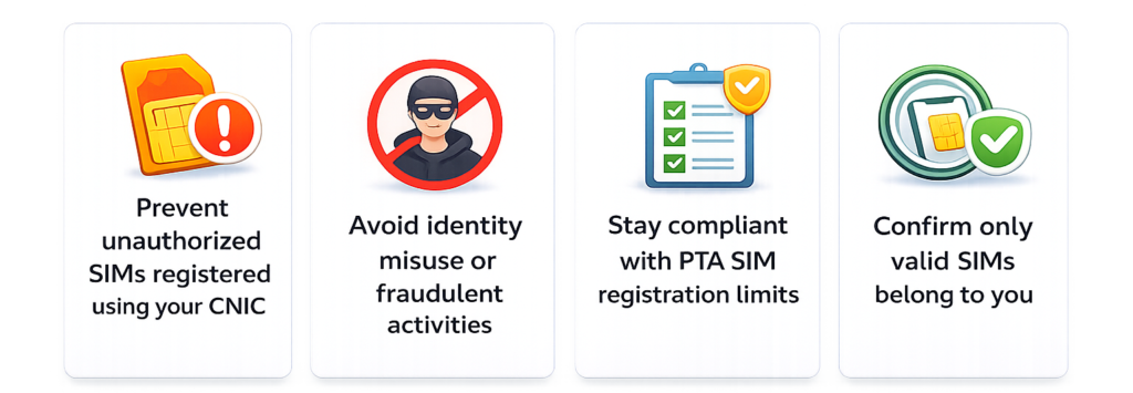 Many people in Pakistan discover SIMs they did not personally register. This can create security risks, especially if those SIMs are used for suspicious activities. Regularly checking your SIM ownership record keeps you safe and informed.